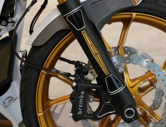 Als Ersatz gibt es die Brembo Radialbremse M4 (dieser Artikel). Die Sättel können auf den modifizierten RS und R-Odynamic Gabeln (Nummer weiter unten) mit Bremsscheibe ab 300 mm verbaut werden. Unbreakable Gabeln sind nicht modifiziert und können nur mit 340 Scheiben und diesen Sätteln verbaut werden.