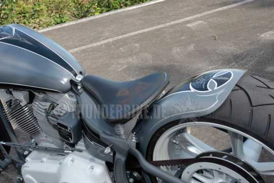 Geeignet für Harley-Davidson Softail Rocker FXCW/C und Breakout FXSB / FXSE & FXSBSE 08-17 Modelle. Achtung: Aufwendige Montage bei den neueren Softail TC Modellen. ECM-Einheit und Sicherungskasten müssen verlegt werden. Federn müssen separat bestellt werden!