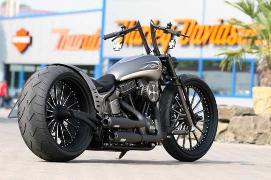 Die Schwinge Kreuzfeuer 18″ für Softail Twincam Modelle (’00 – ’07) wird einbaufertig mit allen Anbauteilen geliefert.