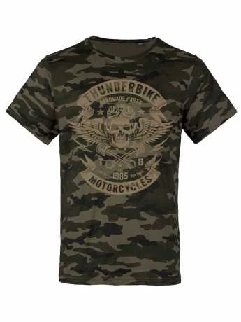Das Thunderbike „Speed Skull“ Shirt kommt in trendigem olive daher. Schluss mit Tarnung – dieses Shirt fällt bestimmt ins Auge.
